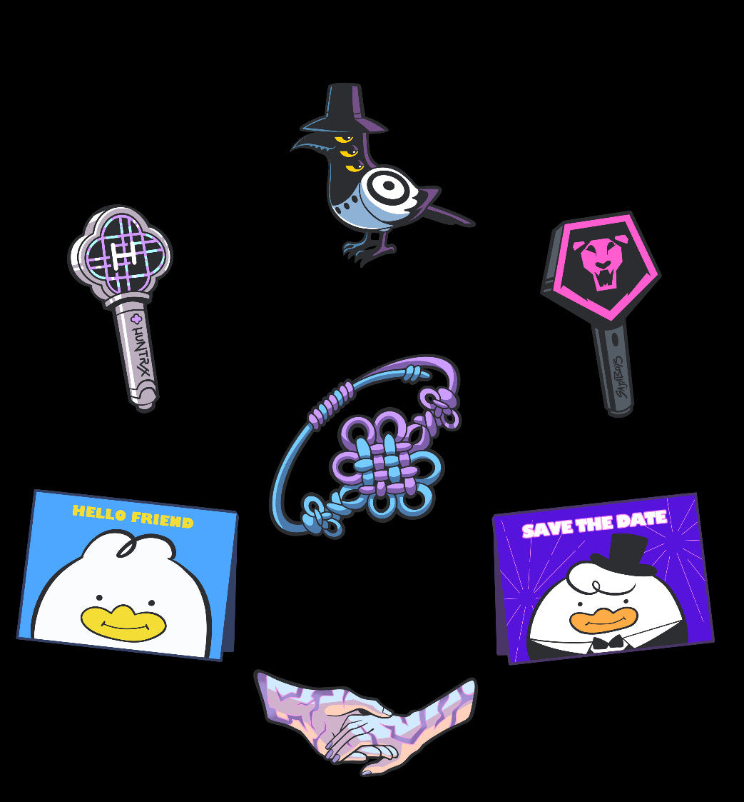 KPOP Filler set in BLACK NICKEL. Enamel and screenprint. UV print used for some details. Sandblast on saja/huntrix wands.